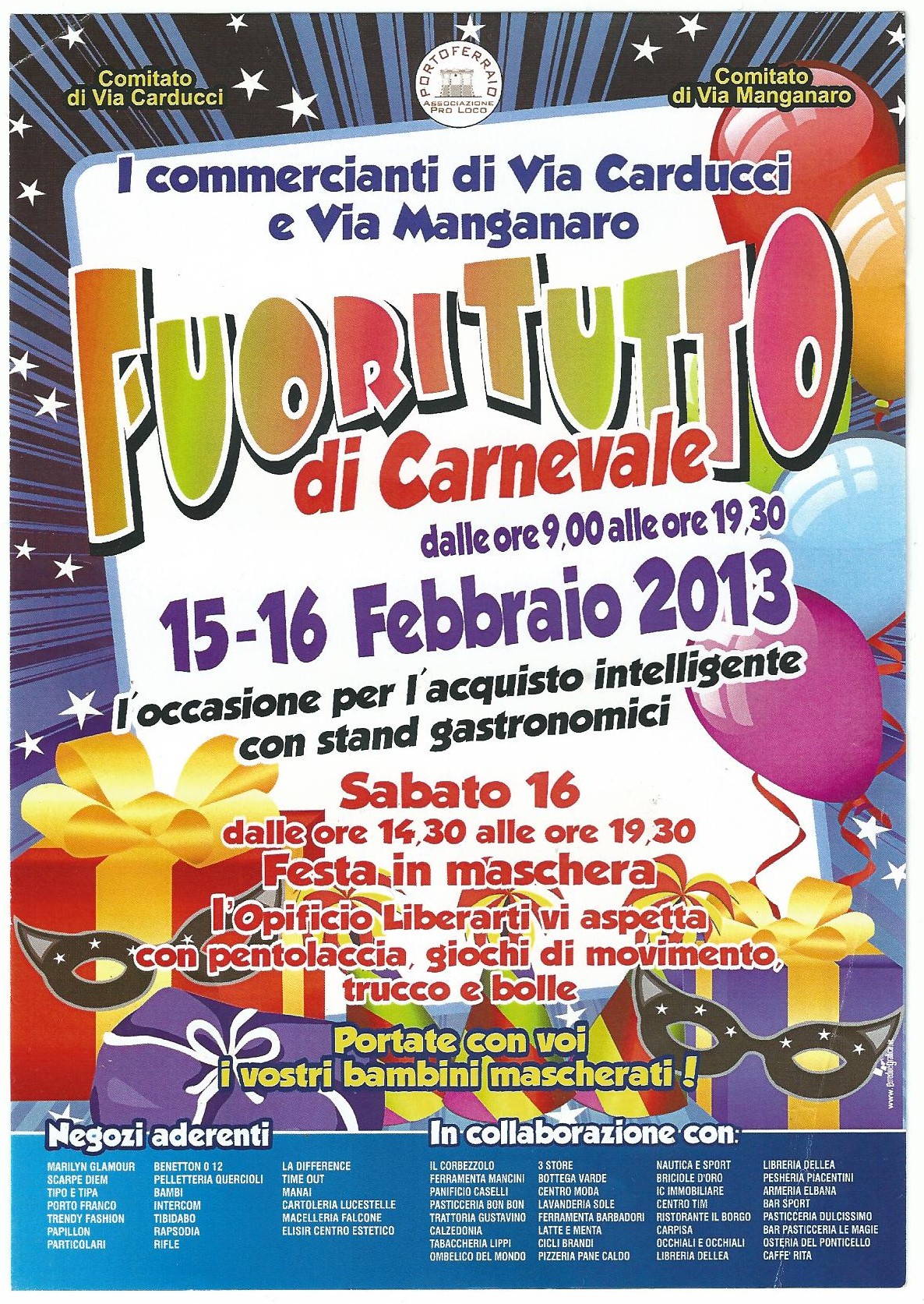Il 15 e 16 febbraio dalle 9,30 alle 19, i commercianti di via Manganaro e via Carducci vi aspettano per il Fuoritutto di Carnevale.