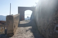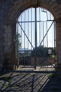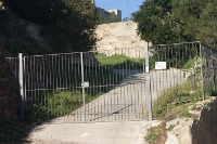 L'ingresso del Falcone, a suo volta chiuso in un più recente cancello alla base dell'ultimo tratto di salita che porta a Forte Falcone (questa situazione dovrebbe essere superata alla fine dell'ultima fase dei lavori