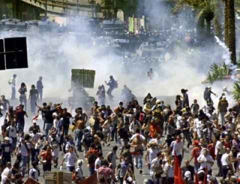 E allora ribadiamo due proposte che sono emerse martedì, al di là di tutte le altre idee, che, statene certi, finiranno per affermarsi (speriamo il prima possibile, ne va del Pianeta); proposte semplici, legate ad un passato che non passa: 1) Il codice di identificazione per gli agenti che si occupano di odine pubblico alle manifestazioni 2) Una commissione d’inchiesta su quei fatti, e sul seguito di depistaggi, omertà, promozioni al merito (della mattanza), Gianni De Gennaro su tutti.