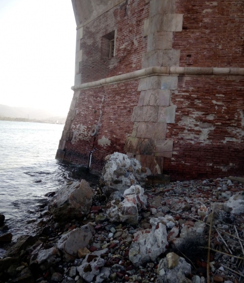 “Anche quelle mura distrutte sono romane?” domanda indicando con la mano imponenti pezzi di mura che giacciono vicino al mare.