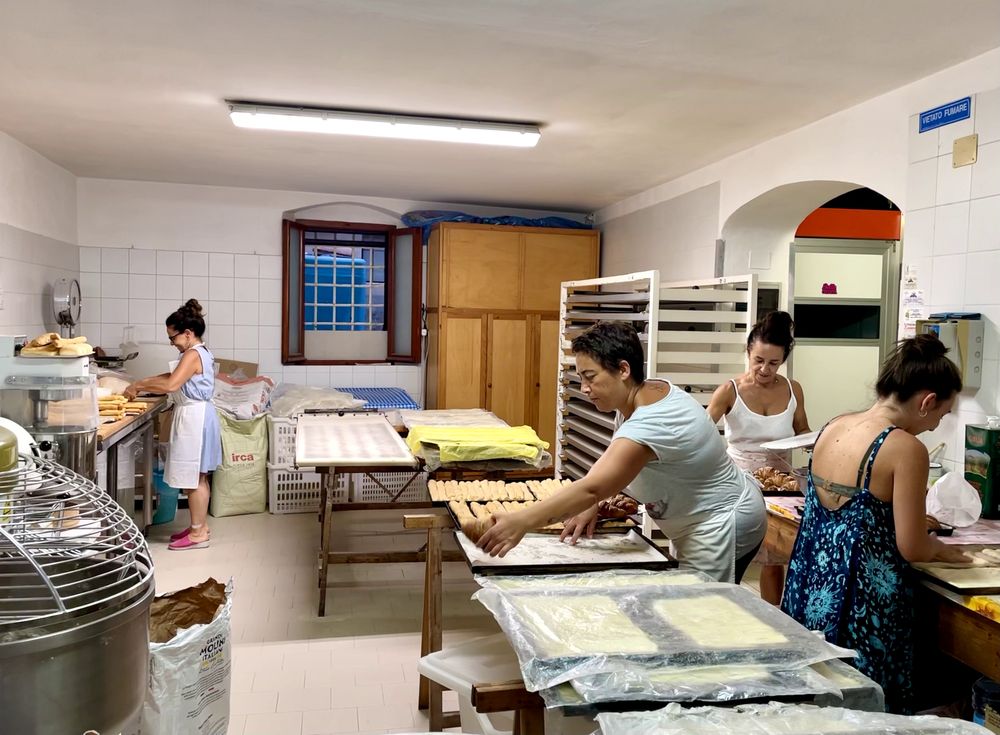La sveglia delle panettiere, che dà inizio alla panificazione della giornata, squilla immancabilmente nel cuore della notte, perché il lavoro del fornaio, si sa, richiede sacrificio, ma tutte loro hanno una grande passione e dedizione. E a giovarne é il palato degli avventori (ed il mio da ben 34 estati) che possono gustare la fragranza del pane e della schiaccia più buona di sempre. I sapori che, dopo un anno di attesa, torno a riassaporare e che, finita l’estate, vorrei imbottigliare e portare con me per continuare a deliziarmi. Insomma, sono già in attesa della prossima estate per infilarmi nello storico panificio di Amelia e Maria Murzi.