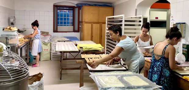 Sul lungomare di Marciana Marina, Scali Mazzini 14, c’è l’insegna “Panetteria” e, più in piccolo, “dal 1890”. Si scendono alcuni gradini e si entra in un piccolo negozio (ma sul retro c’è un ampio laboratorio per la panificazione) che da quel 1890 sforna pane quotidiano e tutto quel che ci ruota intorno. Ormai da alcuni decenni, a condurre la storico forno marinese sono le sorelle Amelia e Maria Murzi, oggi coadiuvate anche da Federica, figlia di Amelia, e da Barbara. Insomma, una panetteria tutta al femminile. Amelia e Maria sono figlie d'arte, poiché la loro è una tradizione familiare lunga ormai 130 anni, avviata da nonno Ercole e proseguita da babbo Luigi.