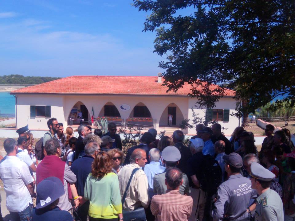 Casa del Parco. Un plotone fatto di alcuni sindaci ( Ciumei, Segnini e Simoni), politici, associazioni, tra cui Legambiente con Mazzantini, militari delle varie armi, il vice prefetto Giovanni Daveti. Presente anche Carmelo Cantone del Dap (Dipartimento dell'amministrazione penitenziaria), che ha confermato l'avvio di progetti sull'isola per il recupero di 80 detenuti con attività di formazione, quindi Schezzini e Pacini dell'amministrazione provinciale ed altri. Ovviamente il presidente del parco Giampiero Sammuri, la segretaria Aurora Ciardelli, ma anche il primo presidente Giuseppe Tanelli, quindi l'assessore regionale Marson e ancora altri funzionari. Tutti hanno raggiunto la nuova sede del parco, che è stata inaugurata con tanto di taglio del nastro da Sammuri, insieme a Eugenio Chierici, avvocato,