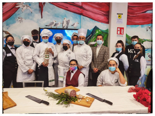 Il laboratorio di sala della scuola ha ospitato oggi un’interessante lezione teorico-pratica di Francesco Seghi, direttore del Consorzio tutela della Finocchiona IGP. Nato nel 2015 per valorizzare, promuovere e tutelare la Finocchiona IGP, il Consorzio tutela riunisce oggi 44 produttori che esportano il meglio del Made in Italy in 28 paesi del mondo. Tra i suoi compiti c’è quello di garantire che ogni fase di produzione della Finocchiona avvenga in Toscana e a regola d’arte, secondo il canone semplice e prezioso della ricetta tradizionale.
