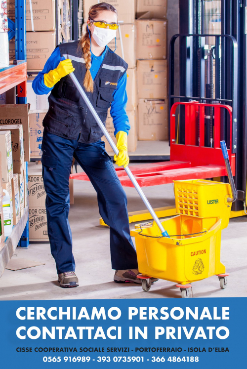 CISSE - Cooperativa Sociale Servizi Invalidi Elbani cerca personale da inserire nell'organico per effettuare pulizie, per 3 mesi contratto da 20/30 ore settimanali, flessibili da effettuare sul territorio elbano.