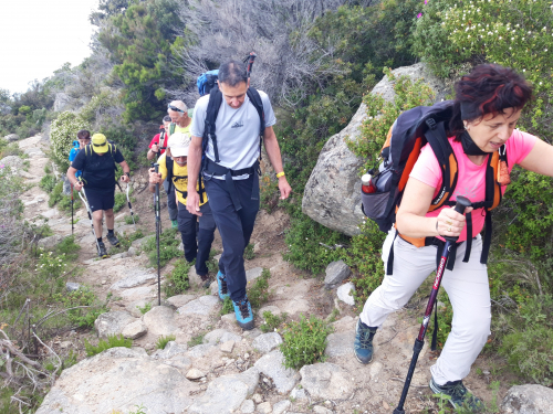 Ne abbiamo già parlato: 4 non vedenti che percorrono tutta la GTE. L’aspetto straordinario non è che l’hanno percorsa in appena tre giorni ma semplicemente che l’hanno percorsa. Abbiamo scritto degli accompagnati e degli accompagnatori ma niente abbiamo raccontato delle emozioni di Vincenzo, Andrea, Dimitri e Paola, titolari delle strutture ospitanti (Hotel Belmare, Fonte di Zeno, Monte Fabbrello, Hotel Maristella). Chi gestisce strutture ricettive è abituato a incontrare persone un po’ di tutti i tipi: ospiti di strutture a tre stelle con le pretese di servizi forniti da hotel a cinque stelle. Clienti esigenti, pretenziosi, che hanno bisogno di qualcosa in più anche quando hanno già tutto quello che può essere loro offerto. Difficile che capiti chi, già contento di quello che ha, trasmetta un messaggio positivo come hanno fatto questi particolari escursionisti. Il racconto unanime di chi ha dato loro alloggio, di chi li ha serviti a tavola è stato di aver ricevuto segnali di amicizia, di interesse al dialogo, voglia di raccontare se stessi con gioia e ironia e far capire che con le proprie forze si può fare tutto. Ha sorpreso osservare le abilità acquisite per sostituire la vista con l’uso degli altri sensi, in particolare l’udito e il tatto lasciando meravigliati per come il comportamento umano sia capace di adattarsi a nuovi modi di vivere. Ha sorpreso l’entusiasmo e l’energia vitale che hanno trasmesso a chi è venuto in contatto con loro, come la determinazione, fino alla caparbietà, nel puntare a raggiungere il risultato. D’altra parte avevano tutti partecipato a manifestazioni sportive di livello internazionale a cui si accede solo con un costante e assiduo allenamento fisico e psicologico. Un vecchio adagio racconta “La parola insegna e l’esempio trascina”. E’ così che, al momento di salutarsi, anche i gestori si sono sentiti più motivati e incitati per affrontare la nuova stagione turistica. Qualcuno si è esposto fino a dire che se verranno fatti corsi per accompagnatori si iscriverà. Per noi del Club Alpino Italiano (CAI)– Sottosezione Elba è una sfida che potremmo raccogliere: organizzare un corso a livello nazionale per accompagnatori di non vedenti. La guida che ha accompagnato il gruppo Dott.ssa Paola Favero, già esperta in questo tipo di formazione, ha promesso che sarebbe dei nostri. Due le ulteriori collaborazioni che ci servono. Una è la struttura del CAI nazionale per la valorizzazione e la diffusione del bando di partecipazione. L’altra è la acquisizione di consapevolezza, da parte delle amministrazioni comunali, di quanto sia importante, per una economia turistica al passo con i tempi, manutenere i sentieri e promuovere i servizi utili all’escursionismo.