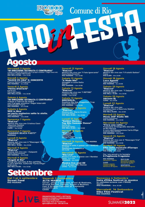 Il Comune di Rio e la Pro Loco pubblicano il calendario degli eventi in programma nel territorio comunale per i mesi di Agosto e Settembre