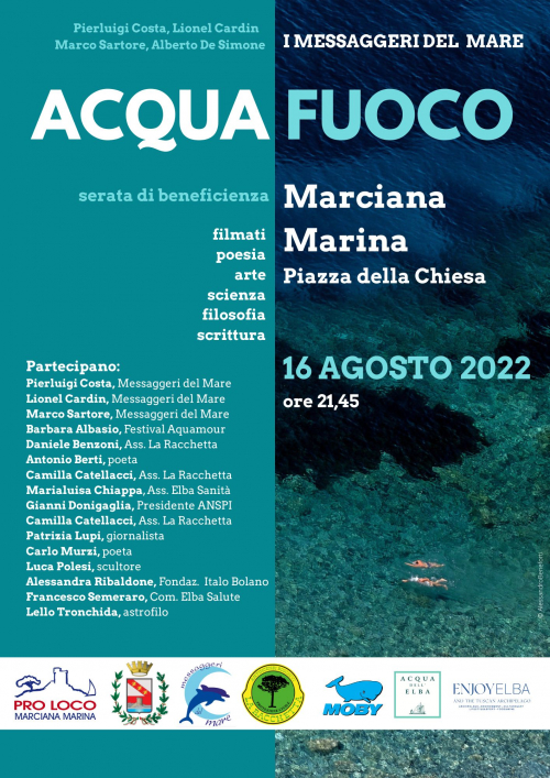 I Messaggeri del Mare, Pierluigi Costa e Lionel Cardin, insieme a Marco Sartore e Alberto De Simone, hanno inaugurato una nuova campagna dedicata al “bene mare” dal titolo emblematico “AcquaFuoco” per raccogliere fondi che saranno devoluti all’Associazione La Racchetta, che si dedica ad attività antincendi e di protezione civile, per l’acquisto di un nuovo mezzo antincendio per l’Elba.