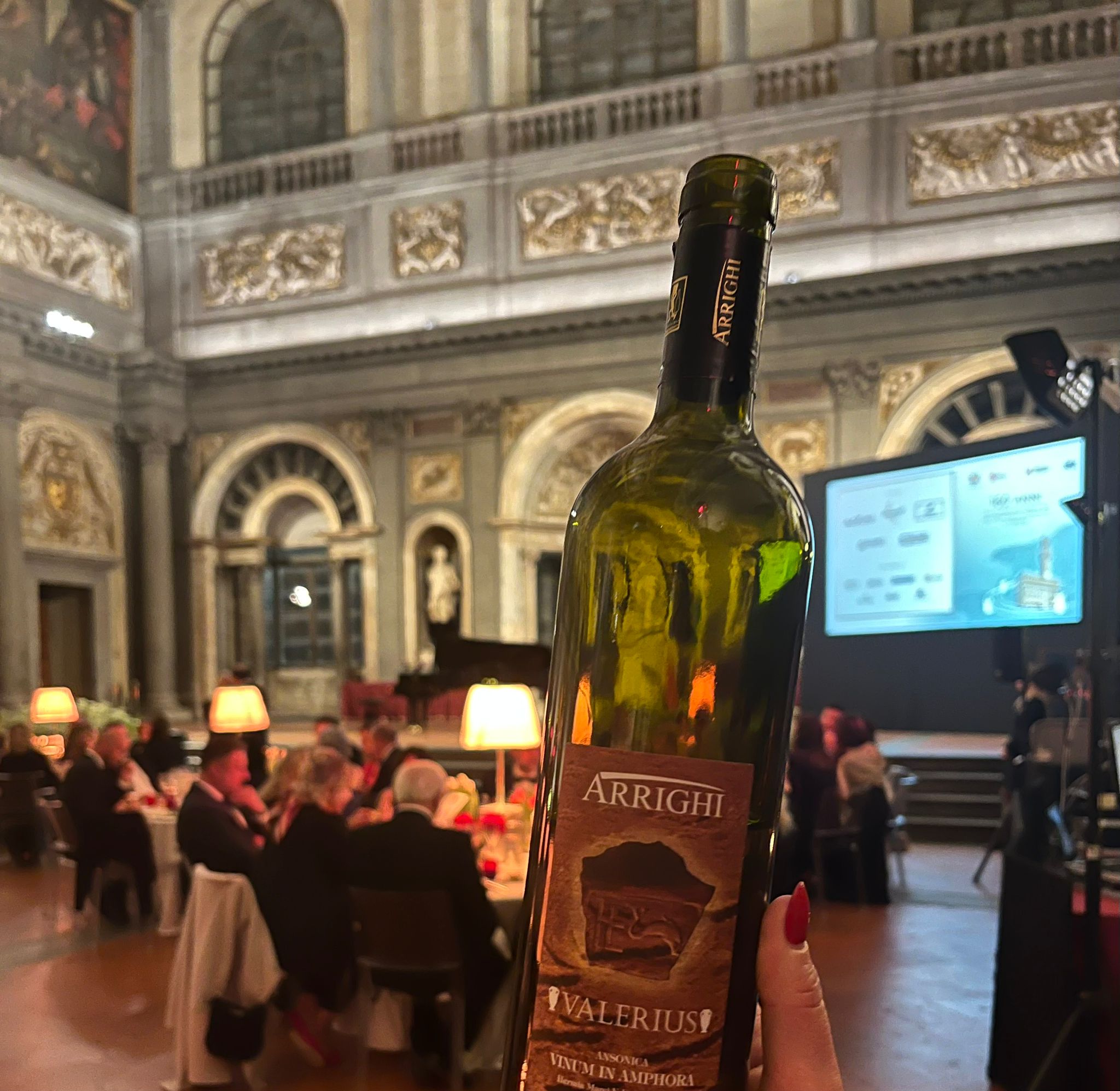Un vino coltivato di fronte al mare sull'Isola d'Elba è stato il vino bianco della serata servito durante la cena di gala: Valerius, da uva ansonica al 100%, vinificato in anfora ha un nome che rende omaggio al romano Valerio Messalla, proprietario della Villa delle Grotte, antica domus romana rinvenuta a San Giovanni, sulla collina delle Grotte che domina la rada di Portoferraio, dove si produceva vino già al tempo dei romani.