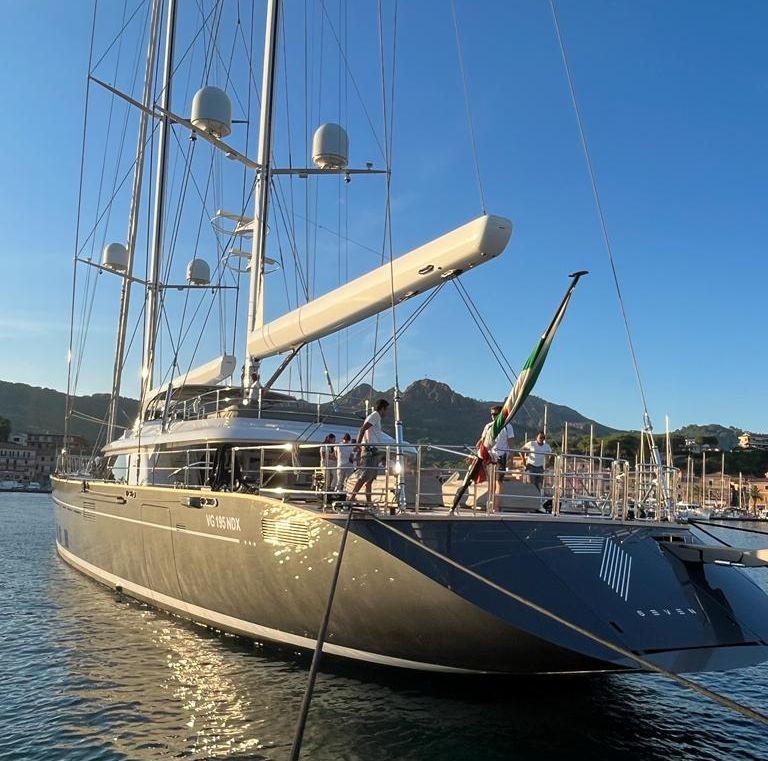 A Porto Azzurro è tornato Seven, lo yacht a vela, disegnato e costruito nel 2017 da Perini Navi, cantiere italiano specializzato nella progettazione e costruzione di yacht di lusso.