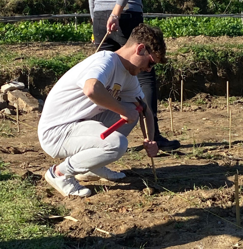 Nella foto: I ragazzi dell'agrario dell'ITCG Cerboni, guidati dal professor Alessandro Petri, squadrano il terreno per l'impianto di una vigna con metodi tradizionali presso gli Orti Sociali di Auser odv