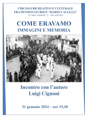 L'incontro dal titolo "Come eravamo - Immagini e memoria" è in programma per domani, 31 gennaio, alle ore 15,30 in va Ilario Zambelli, 21 a Rio nell’Elba.