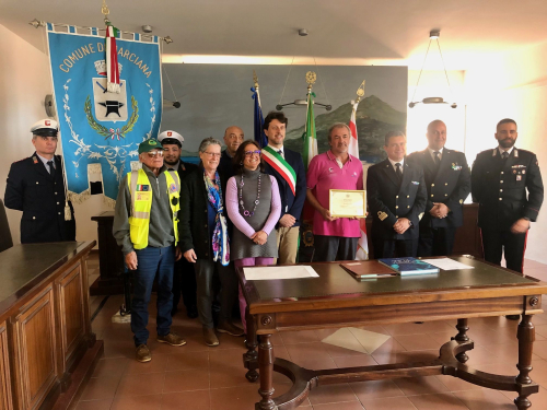 Si è tenuta oggi a Marciana, nella sala consiliare del comune, la cerimonia di consegna dell’encomio di ringraziamento a Pierluigi Costa. Il Sindaco Simone Barbi ha ricordato l’impresa recente di salvataggio in mare e l’impegno costante del “Messaggero del mare” nel divulgare i valori positivi del rispetto e dell’amore per l’ambiente e dell’importanza della solidarietà verso il prossimo.