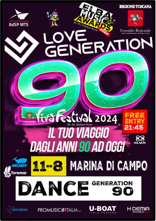 Stasera a Marina di Campo si balla anni "90. Piazza Dante per una notte si trasforma in una grande pista da ballo, con Dance Generation "90 di Elba Music Awards. Vocalist ballerini e dj, sarà la celebrazione della musica Dance per eccellenza. Tutte le hits che hanno fatto sognare più generazioni. Free Entry inizio ore 21.45.