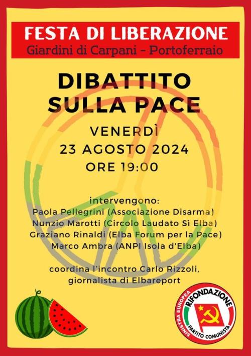 La Festa di Liberazione, ai giardini di Carpani (23-25 agosto) apre nella serata di venerdì, ore 19, con un dibattito sulla pace (che non c'è).