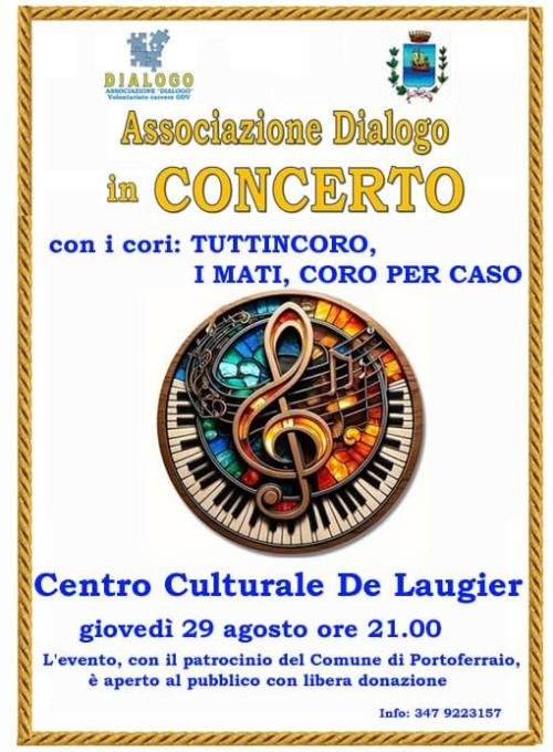 Giovedì 29 agosto alle ore 21,00 presso il Centro culturale De Laugier si svolgerà il concerto organizzato dall'Associazione Dialogo.