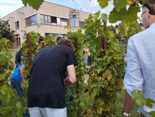 Studenti, insegnanti, personale scolastico, la dirigente Prof.ssa Alessandra Rando e il patron - 4 anni fa- dell'operazione, il viticoltore Antonio Arrighi, hanno raccolto le uve di ansonica delle 116 viti ad alberello (tecnica con natali nell'antica Grecia) messe a dimora nel 2020 grazie al progetto approvato dall'allora Preside Fazio.