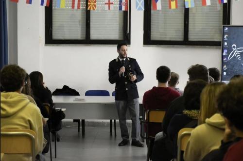 La giornata si è conclusa con un’emozione grandissima, visibile negli occhi dei nostri ragazzi quando, con un sorriso disarmante, nell’Aula magna dell’istituto ha fatto il suo ingresso il Vice Ispettore della Polizia di Stato Christian Di Martino, che, nella notte tra l’8 e il 9 maggio scorso fu accoltellato da un criminale presso la stazione di Milano Lambrate e che, dopo un intervento chirurgico durato più di 7 ore durante il quale ha subito ben 5 arresti cardiaci e l’asportazione di un rene ed ha avuto bisogno di più di 70 trasfusioni di sangue. Di Martino, dopo aver raccontato la sua esperienza, incalzato da qualche domanda degli studenti, ha ribadito che rifarebbe tutto quello che ha fatto quel brutto 8 maggio e oggi, ormai in via di guarigione, non vede l’ora di tornare a svolgere il suo lavoro al servizio della collettività.
