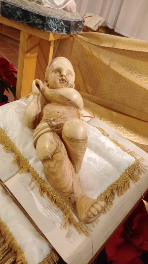Il bambino, situato accanto all'altare della chiesa di San Giuseppe, è tratto dal legno d'ulivo, opera di un artista palestinese.