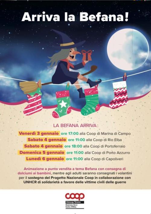 Arriva la Befana alle Coop dell'isola d'Elba, la tradizione italiana continua.