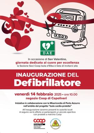 La Sezione Soci Coop Isola d'Elba Unicoop Tirreno è lieta di invitare tutta la Cittadinanza in occasione dell'inaugurazione del Defibrillatore che verrà posizionato nel supermercato Coop di Capoliveri in data 14 Febbraio alle ore 12 "Giornata dedicata al cuore per eccellenza" San Valentino.