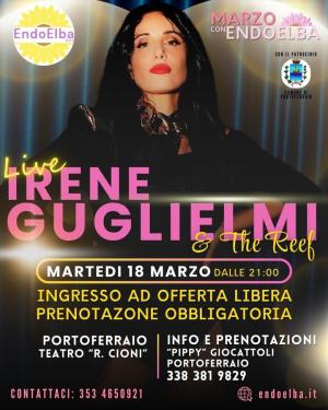 Martedì 18 marzo, alle 21:00, il Teatro dei Vigilanti “R. Cioni” di Portoferraio si accenderà con la straordinaria voce di Irene Guglielmi & The Reef! Un evento imperdibile che unisce musica e solidarietà, organizzato nell’ambito di "Marzo con EndoElba", con il patrocinio del Comune di Portoferraio.