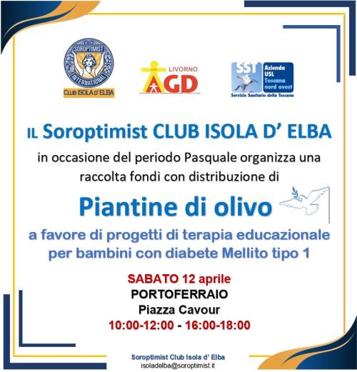 Il Club Soroptimist Isola d'Elba organizza una campagna di raccolta fondi a sostegno di un progetto educazionale dedicato a bambini affetti da patologie croniche, in particolare il diabete mellito di tipo 1.