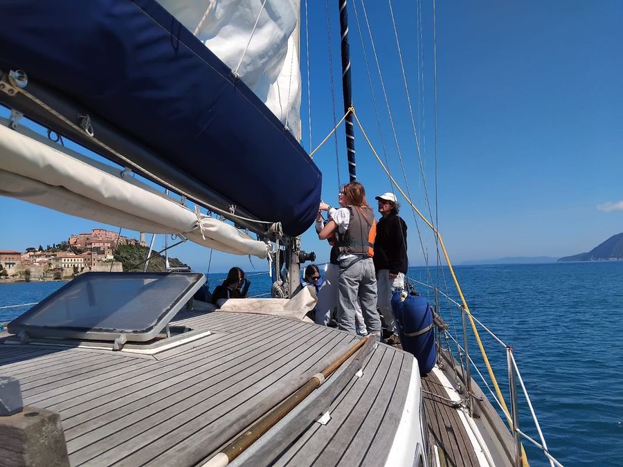 Gli studenti e le studentesse sono usciti in barca a vela in una bella (e recentemente rara) giornata di sole caratterizzata da un vento leggero, grazie alla collaborazione dei Soci armatori LNI Bolano e Colombaioni, seguiti e istruiti dall'esperto velista il professor Raffaello Sarperi e dagli istruttori di vela FIV LNI Marco Bulleri e Francesca Gambelunghe. Si sono divertiti e hanno imparato a bordo, mettendo in pratica le lezioni svolte finora in classe e a terra.