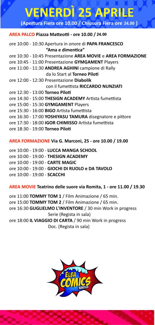 Elba Comics Plus Players un format ideato da Stefano Picchi con la preziosa collaborazione del regista Stefano Muti. Come già annunciato si aprirà con l'omaggio a Papa Francesco mandando in onda il clip ufficiale della prima preghiera pop al mondo firmata da un pontefice "Ama e dimentica".