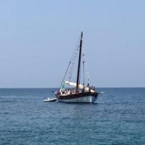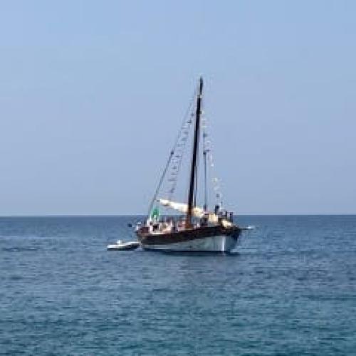 Stavolta non sono venuti a prendere il vino dell’isola, ma a festeggiare i cento anni della storica imbarcazione e a portare un messaggio di umanità e di amore per la nostra storia comune, per la tradizione della terra e per il mare.