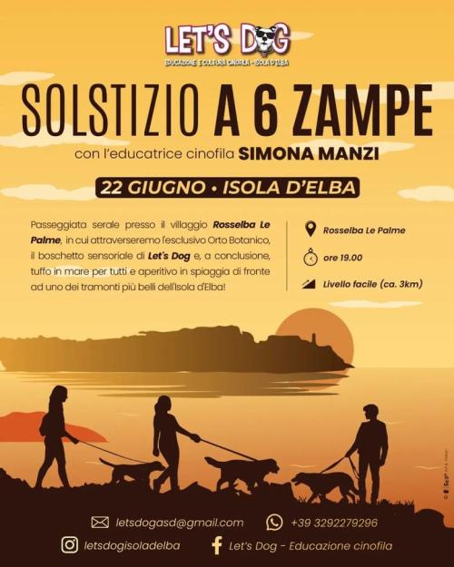 Let’s Dog Isola d'Elba organizza per domani, domenica 22 giugno, il Solstizio a 6 zampe con l’educatrice cinofila Simona Manzi.