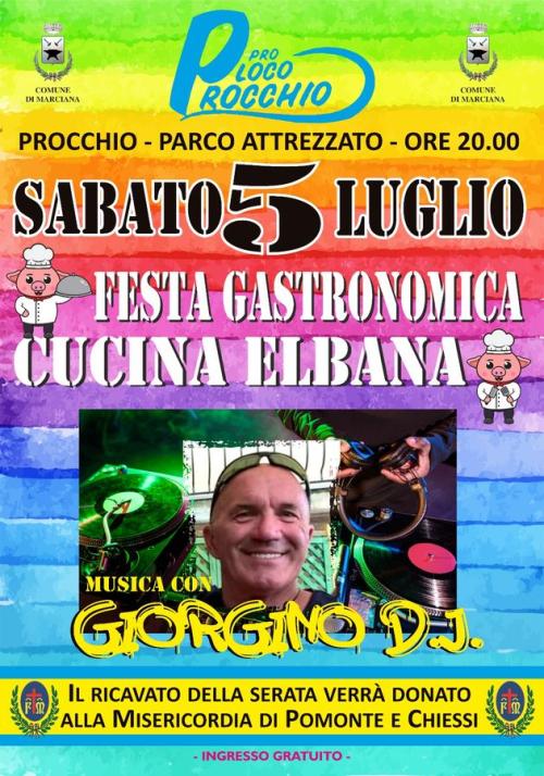 La Pro Loco di Procchio, con il patrocinio del Comune di Marciana, è lieta di invitare cittadini e visitatori alla Festa Gastronomica della Cucina Elbana, che si terrà sabato 5 luglio a partire dalle ore 20.00 presso il Parco Attrezzato di Procchio.