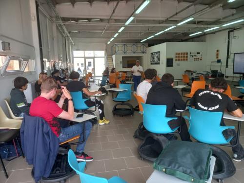 Gli studenti sono attenti soprattutto quando vengono proiettati i video delle barche di Coppa America per mostrare le differenze fra derive, windsurf e “Ferrari del mare”.