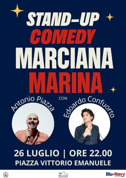 La piazza si trasforma in un vero e proprio palcoscenico sotto le stelle con STAND-UP COMEDY MARCIANA MARINA, uno spettacolo comico imperdibile che porta sul palco due artisti travolgenti: