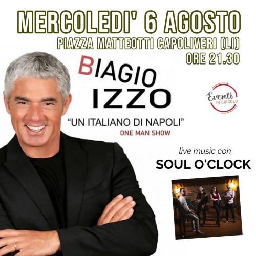 Mercoledì 6 agosto un big dello spettacolo sarà presente in piazza Matteotti a Capoliveri, alle 21.30 con ingresso libero. Si tratta di Biagio Izzo noto comico e cabarettista che si esibisce spesso in tv ed ha partecipato a varie pellicole cinematografiche.