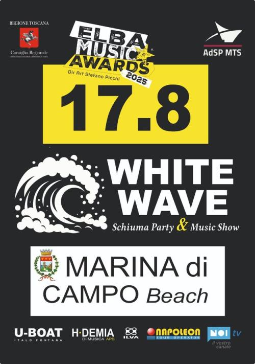 Il 17 Agosto Marina di Campo Beach, si aggiunge una nuova data agli Elba Music Awards si chiama "White Wave" Schiuma Party & Music Show.