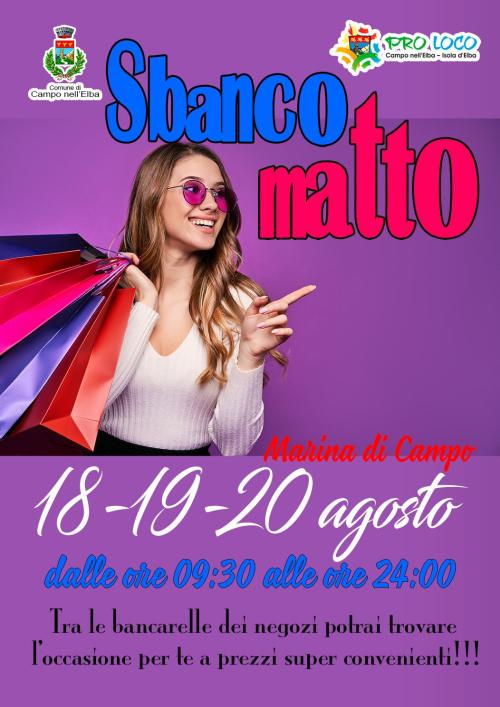 Una passeggiata fra le bancarelle dello Sbancomatto, allestite da molti negozi di Marina di Campo, è quella che propone la Proloco con il patrocinio del Comune di Campo nell'Elba.