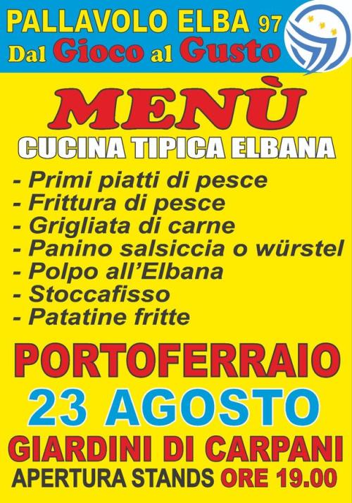 Si replica con la sagra gastronomica della Pallavolo Elba 97, Nuovo appuntamento sabato 23 agosto sempre presso i giardini di Carpani.