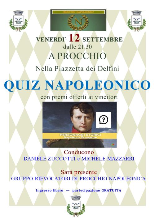 Continua l'estate a Procchio con il nuovo Quiz Napoleonico, divertente ed istruttivo format ideato dall'Associazione Culturale Procchio Napoleonica per intrattenere gli ospiti con la conoscenza dell'Imperatore e piccole pièce teatrali.