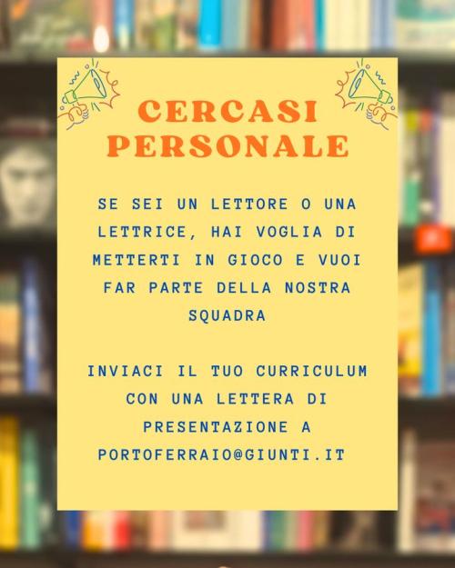 Se sei un lettore o una lettrice, hai voglia di metterti in gioca e vuoi far parte della squadra della Libreria Giunti al Punto a Portoferraio.
