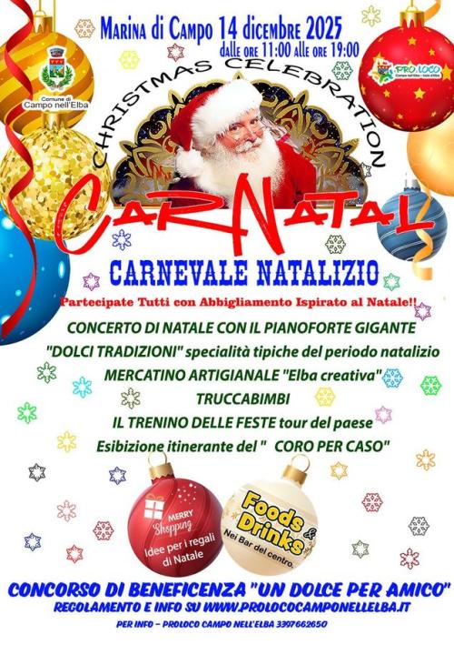 Il 14 Dicembre in occasione del CARNATAL a Marina di Campo è stato organizzato il concorso “Un dolce per amico”, la Pro Loco di Campo nell’Elba, lancia questa nuova idea all’insegna della solidarietà.