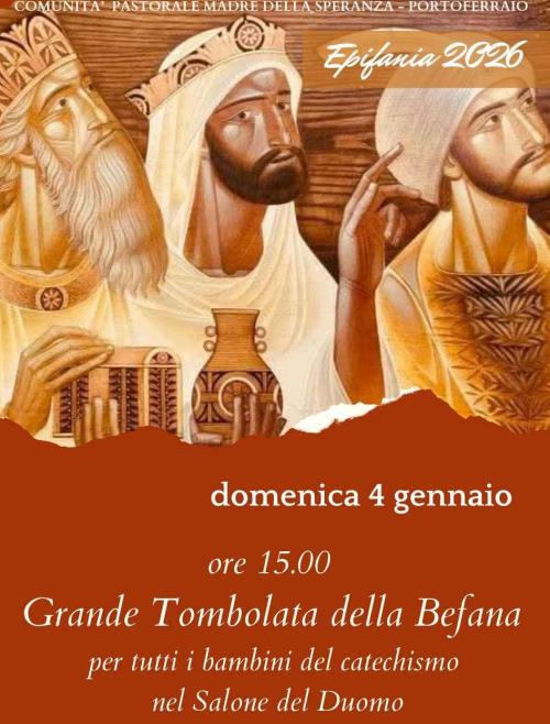 Infine c'è da ricordare che alle 15, del 4 gennaio, si terrà la grande tombolata in attesa del giorno della Befana, per tutti i bambini del catechismo, nel Salone del Duomo.