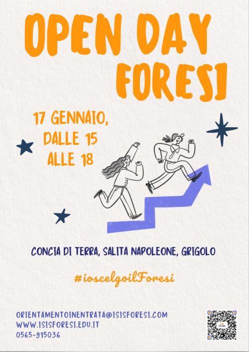 L’appuntamento, però, più importante della prossima settimana sarà quello dell’Open day di sabato 17 gennaio, quando i tre plessi del Foresi saranno aperti dalle 15 alle 18 per permettere ai futuri alunni delle scuole superiori di visitarli insieme ai propri genitori: il plesso di Concia di Terra, dove hanno sede Enogastronomico, Manutenzione e Assistenza Tecnica, liceo delle Scienze applicate e liceo Sportivo, quello del Grigolo, dove svolgono le loro lezioni gli indirizzi liceali del Classico e dello Scientifico, ed infine quello di Salita Napoleone, sede del liceo delle Scienze umane.