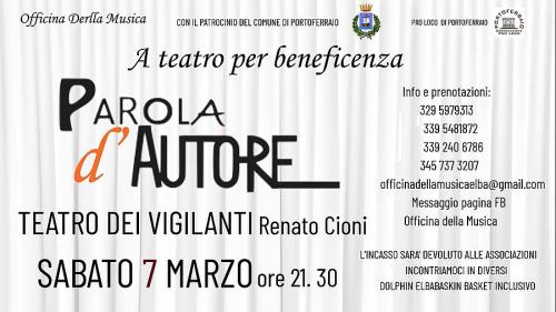 L'evento, in programma per sabato 7 marzo al Teatro dei Vigilanti - Renato Cioni a Portoferraio, è realizzato con il patrocinio del Comune di Portoferraio e in collaborazione con la Pro Loco di Portoferraio e con il fondamentale supporto gratuito dei musicisti presenti.