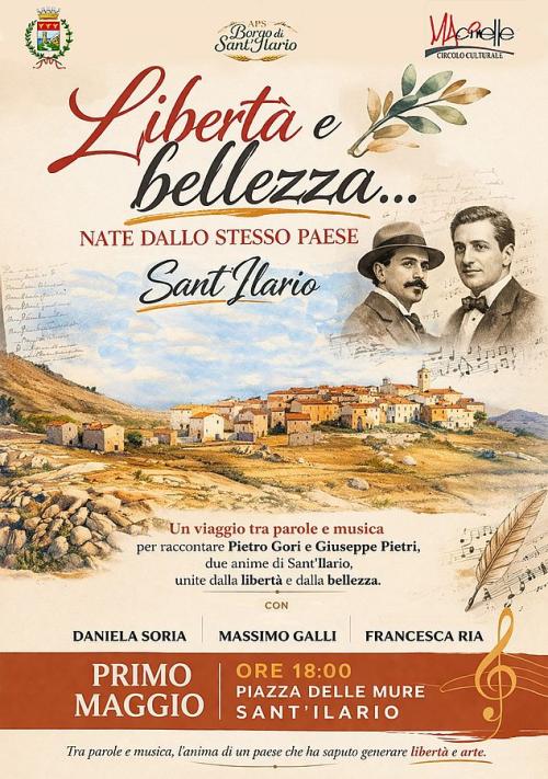 “Libertà e bellezza… nate dallo stesso paese”, sarà dedicato a Pietro Gori e Giuseppe Pietri lo spettacolo in programma il Primo Maggio alle ore 18 in Piazza delle Mure a Sant’Ilario.