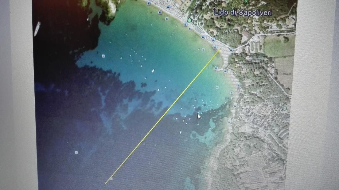 Come si vede dalla foto la condotta progettata riverserà la salamoia nel mezzo di una prateria di Posidonia esistente al largo tra la spiaggia di Lido e la spiaggia di Zuccale.