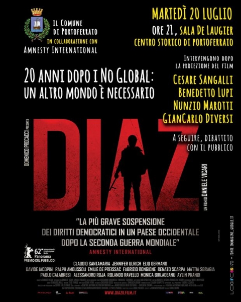 Il film “Diaz” di Daniele Vicari è uno dei pochi su quei giorni drammatici. Lo riproponiamo MARTEDI’ 20 LUGLIO, alle ore 21, al cinema-auditorium del Centro Culrurale De Laugier di Portoferraio (ingresso gratuito, rispetto norme sanitarie).