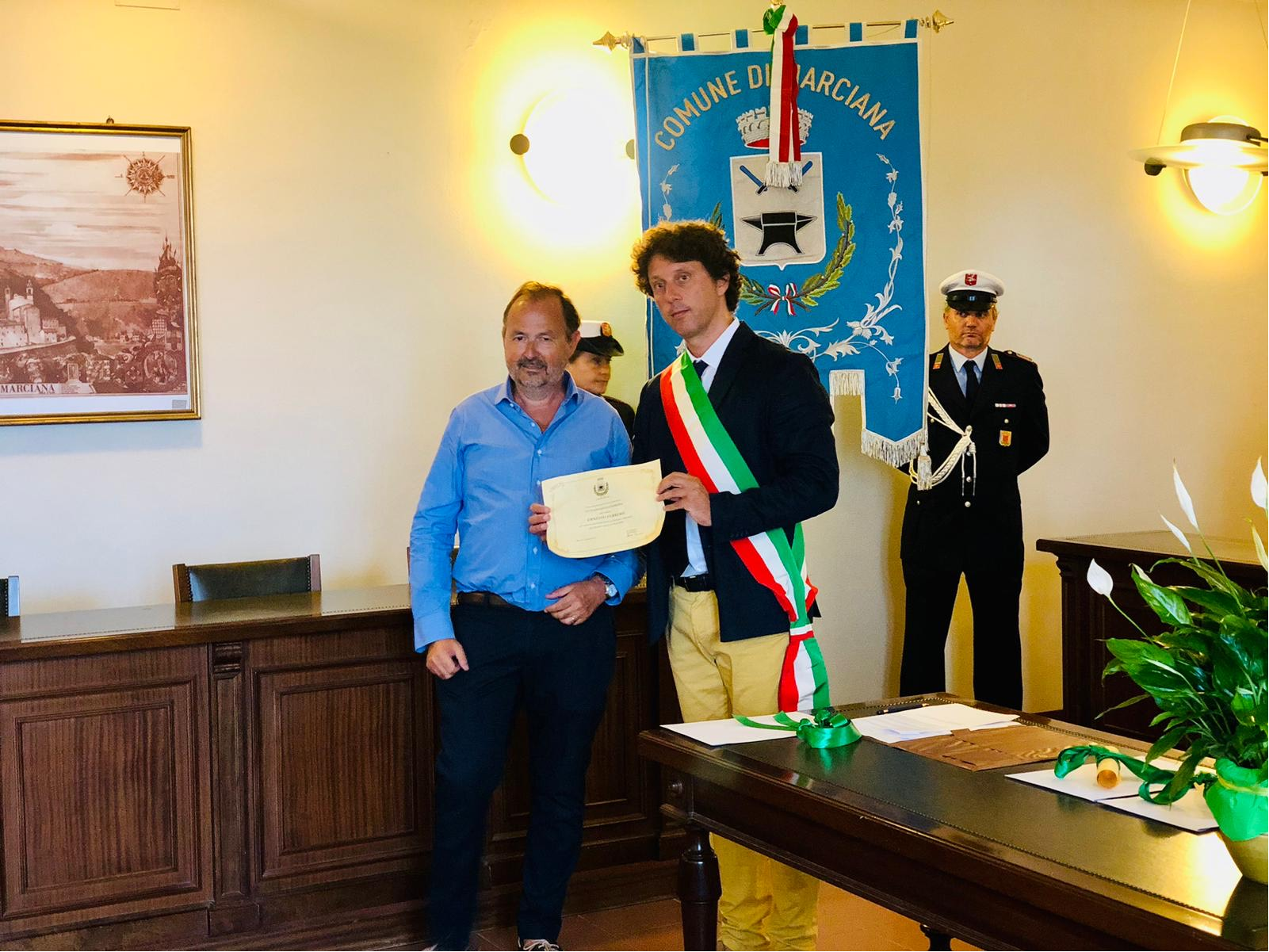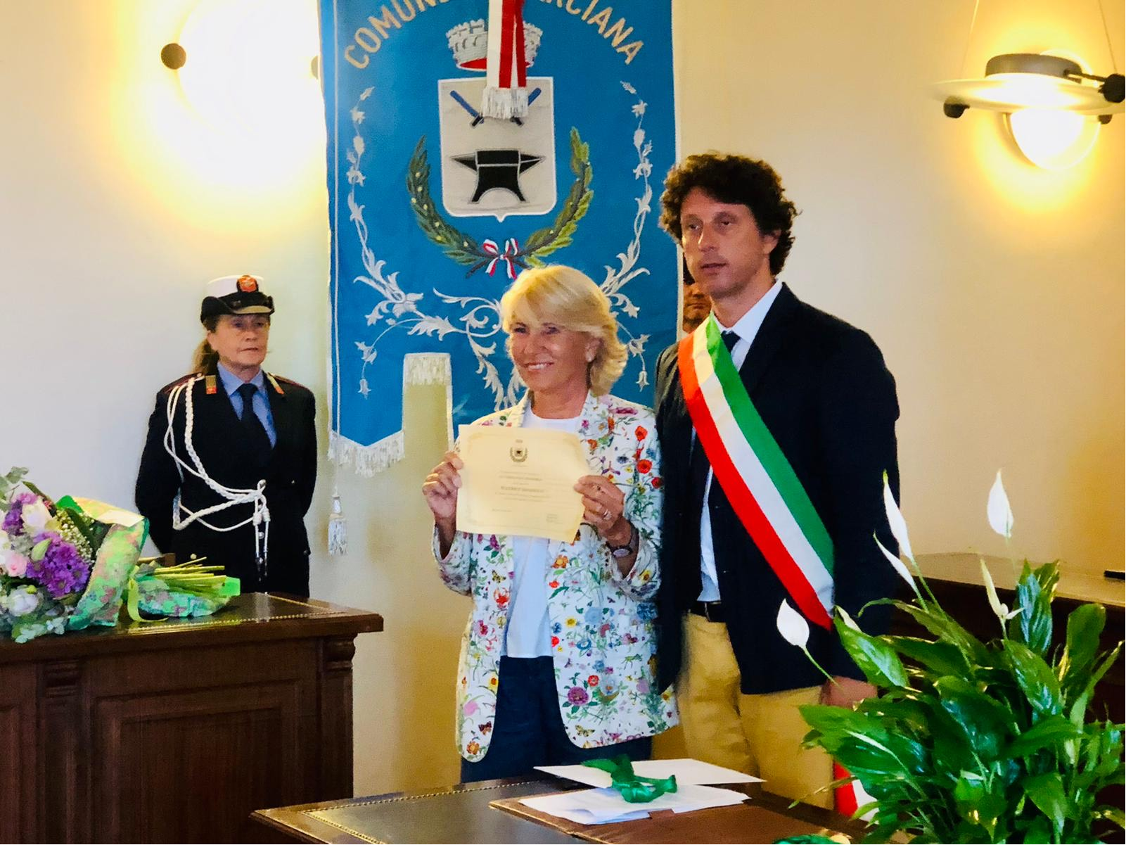 In seguito alle Deliberazioni del Consiglio Comunale del 24-7-2023, lunedì scorso nella sala consiliare del Comune si è tenuta la cerimonia di consegna della pergamena che attesta l’iscrizione simbolica tra la popolazione marcianese per mano del Sindaco di Marciana Simone Barbi alla presenza del Consiglio Comunale. Presenti in sala, oltre ad alcune autorità, numerosi parenti e amici dei tre nuovi cittadini onorari che hanno seguito con grande attenzione la cerimonia sobria ed emozionante.