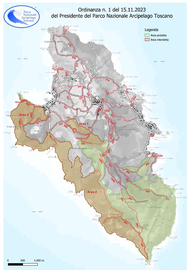 Più nello specifico l’Ordinanza è vigente dal 15.11.23 al 22.12.2023 e tra il 08.01.2024 e il 29.02.2024 e vieta a chiunque l’accesso nelle due aree del Parco Nazionale situate nel settore centrale e occidentale/sud-occidentale dell’Isola del Giglio, individuate nella mappa allegata