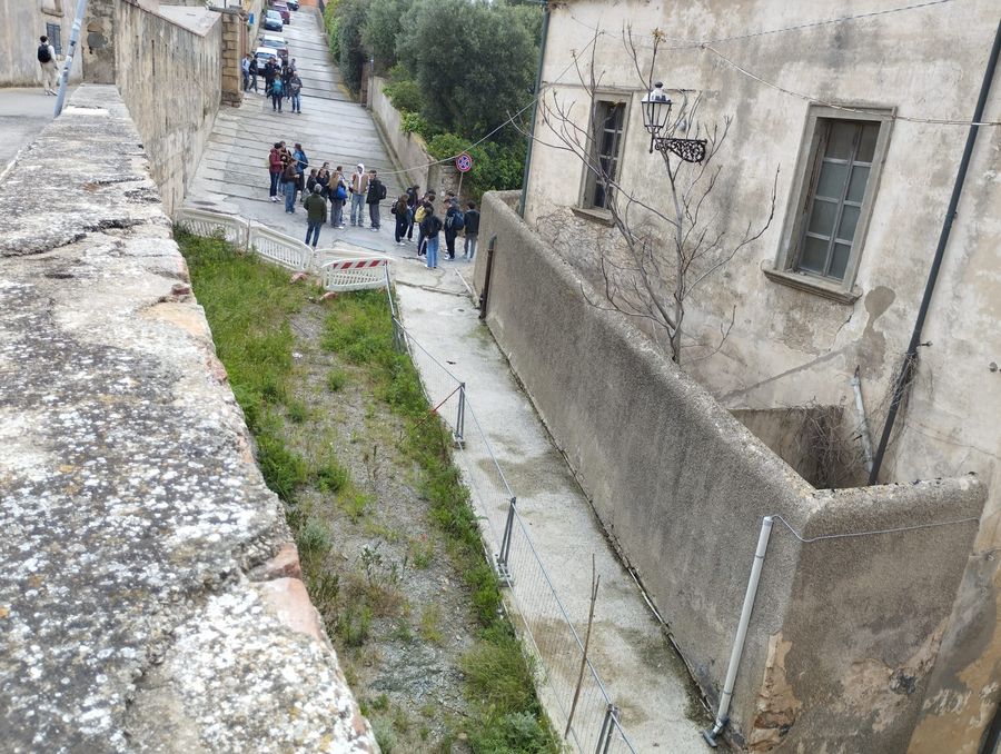 Le comitive che stanno affollando in questi giorni la Palazzina dei Mulini, infatti, appena escono da uno dei musei più visitati d'Italia, si trovano di fronte, nel giro di 100 metri, due situazioni di degrado totale, come le immagini documentano: la parte estrema del Padiglione, semidisabitato (per il quale abbiamo avanzato una proposta di recupero e utilizzo sociale), che necessita di un urgente intervento igienico sanitario e, svoltato il passaggio delle antiche mura, proprio in cima alla Salita Napoleone, un disadorno cantiere transennato e abbandonato da alcuni anni, sul cruciale percorso che collega il Museo Napoleonico con il centro città.